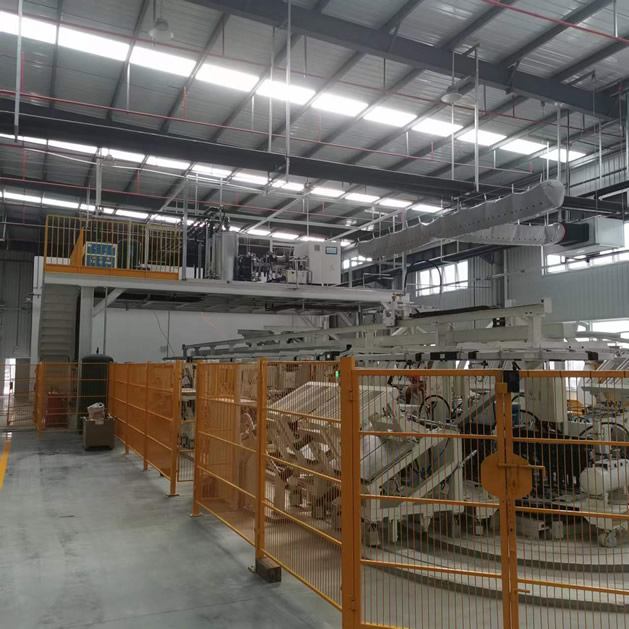全自動環形發泡生產線是專門為大規模汽車坐墊發泡而設計的,該生產線為地面環形結構,最多可設60工位,生產節拍自動調節,系統采用機器人自動澆注,能實現雙硬度汽車坐墊和靠墊的混線生產,具有自動化程度高、性能安全可靠、適合大批量生產等特點。